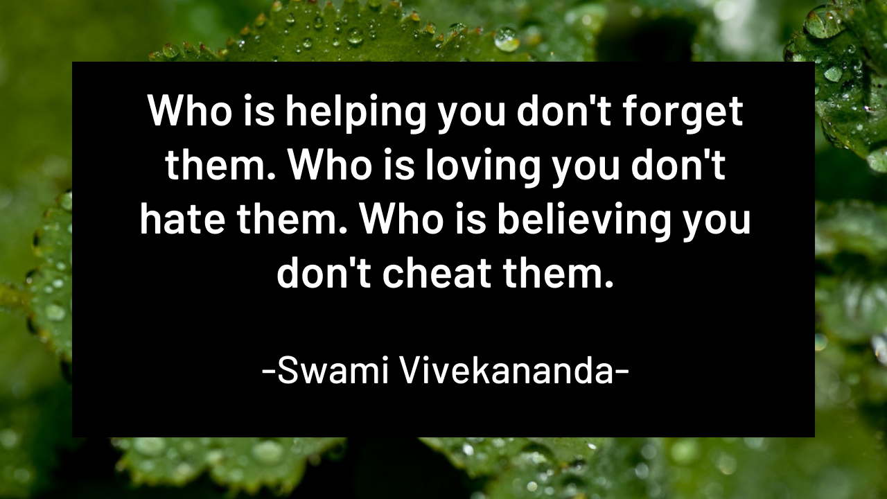 "Who is helping you don't forget them. Who is loving you don't hate them. Who is believing you don't cheat them." -Swami Vivekananda